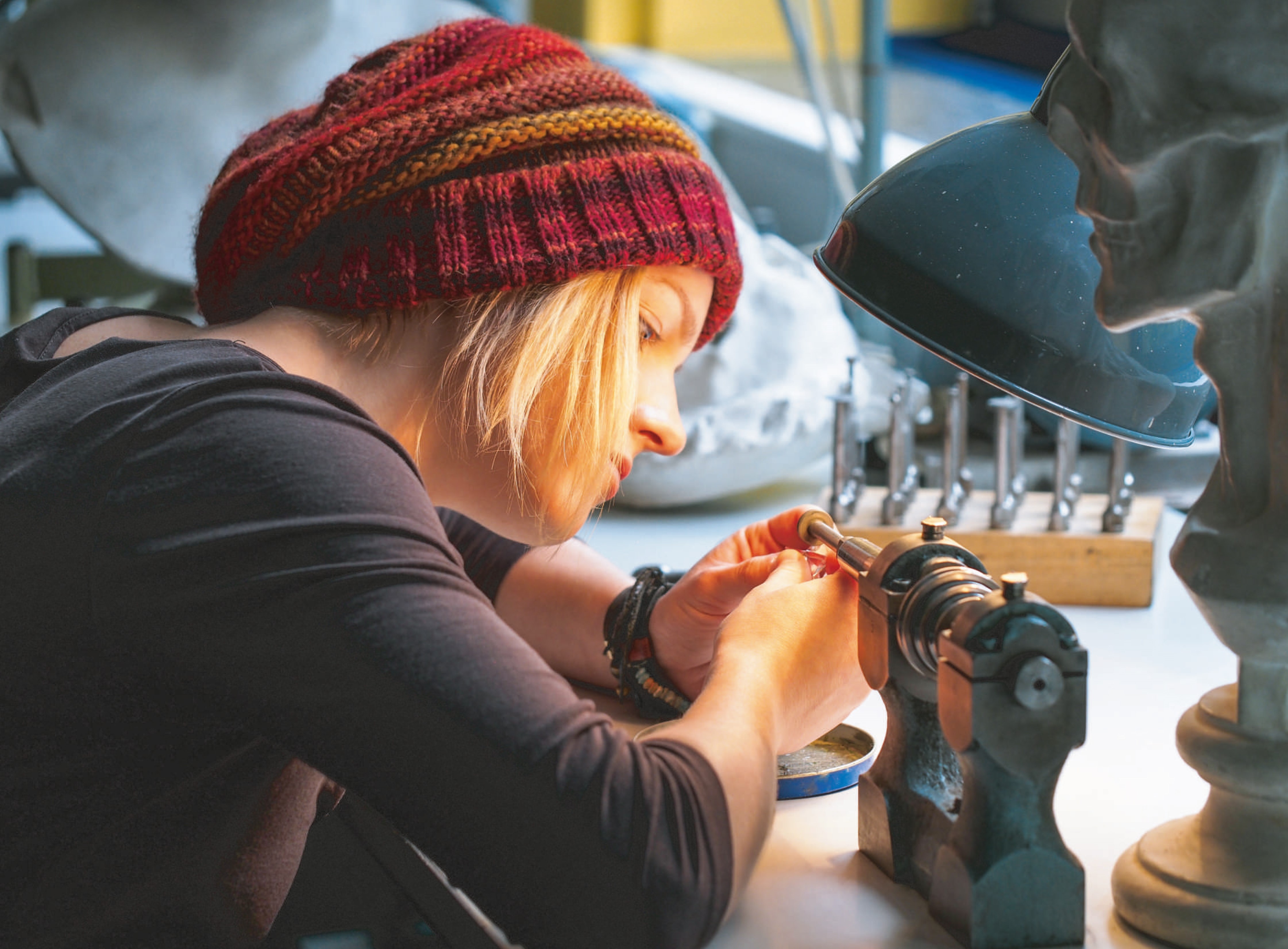 Besucher der Gemworld Munich sind herzlich eingeladen, den Stand der Goldschmiedeschule mit Uhrmacherschule Pforzheim zu besuchen und einen faszinierenden Einblick in die Welt der Edelstein- und Goldschmiedearbeiten zu erhalten. Die traditionsreiche Schule, deren Wurzeln bis ins Jahr 1768 zurückreichen, ist ein führendes Kompetenzzentrum für Schmuckberufe in Deutschland. Am Stand präsentieren die Schüler klassische Goldschmiedetechniken wie das Herstellen von Ketten und Fassungen für Juwelen sowie das kunstvolle Fassen von Edelsteinen. Ein besonderes Highlight ist die Vorführung an der Steinschleifmaschine, bei der das Schleifen von Halbedelsteinen gezeigt wird. Diese Demonstrationen bieten einen lebendigen Einblick in die handwerklichen Fertigkeiten, die an der Schule erlernt werden. Neben diesen praktischen Vorführungen stellt die Goldschmiedeschule auch ihre vielfältigen Ausbildungswege vor, die jungen Menschen eine fundierte Ausbildung in den Bereichen Schmuckdesign, Edelsteinbearbeitung und traditionellem Goldschmiedehandwerk bieten. Die Schule ist stolz darauf, ihre Schüler auf hohem Niveau auszubilden und ihnen eine sichere berufliche Perspektive in der Schmuckbranche zu eröffnen. Interessierte Besucher, insbesondere junge Talente mit einer Leidenschaft für Schmuck, sind eingeladen, sich über die Ausbildungsmöglichkeiten zu informieren und die Goldschmiedeschule mit Uhrmacherschule Pforzheim als möglichen Ausbildungsort kennenzulernen.